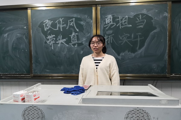 唐文晓就做实验的经历为例分享了自己的感想,表示看到新闻里报道过实验室出现虚假的数据和实验报告,这种事情是非常不公平的,也很不尊重科学。她认为即使实验结果不理想也应该如实记录,作为一名党员更应该端正自己的作风态度,勇敢地承担起责任,做诚实的人。