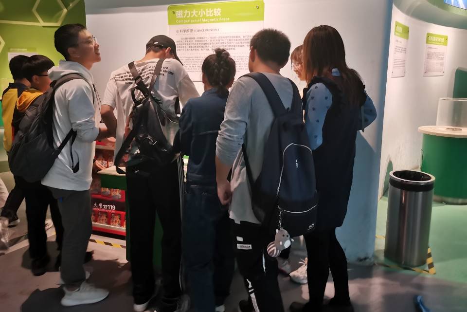 活动开始前,志愿者在五舍广场集合,负责人安排好相关事宜后带领志愿者们开始活动;志愿者们进入科技馆内,负责人再次强调注意事项,而后志愿者以小组的形式进行活动,观察科学科普仪器,并与场内的儿童进行亲切互动,给予他们一定的知识科普。