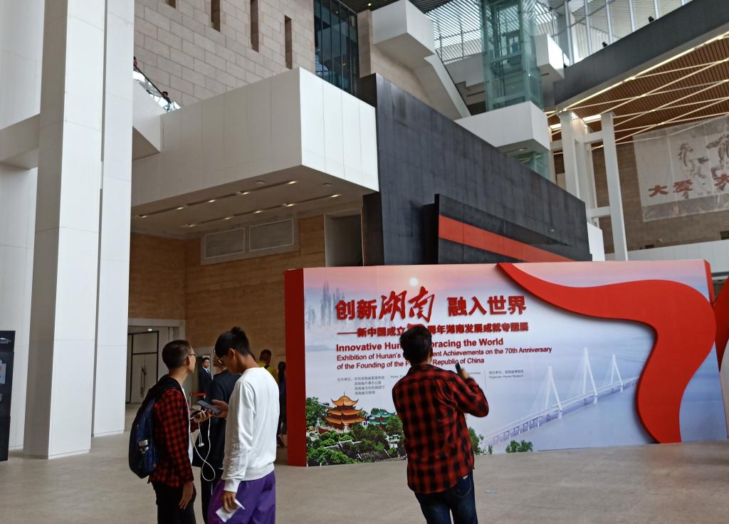 支部成员自行组队前往省博物馆,在省博物馆门口集合。进馆后,依支部原计划,同学们自行参观,着重对湖湘文化进行了解学习,最后在博物馆一楼大厅集合进行交流学习。
