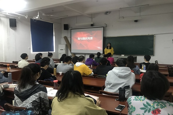 活动伊始,1706班团支书李铭宣给全体成员播放了中华人民共和国成立七十周年阅兵仪式及我国发展历程视频,并展示了“我与国庆风景”的相关合照。展示完毕,全体支部成员高唱国歌,唤起同学们对国家的热爱及民族自豪感。