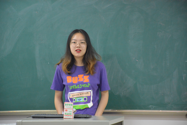 贾育红播放爱国歌曲视频,并对会议流程作出简要安排。随后,1604班员工就暑期实习心得及中华人民共和国成立七十周年感想两个方面,按学号上台进行演讲汇报。尹笃林对演讲内容丰富,仪态自然且脱稿的员工提出表扬,并随机对发言员工进行针对性提问。