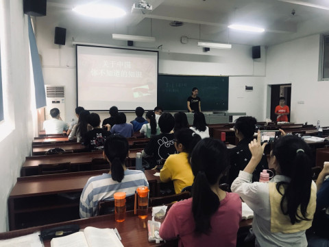 班长梁茎玮介绍了《诗经》等中国传统文化著作,意在让同学们 “脚踏实地,实事求是”,知道它出自于《汉书》中的“修身好古,实事求是”;当同学们迷恋日本动漫,韩国电视剧的同时能知道知道《山海经》里的神话故事,知道昆曲的历史,知道十二木卡姆的声音。