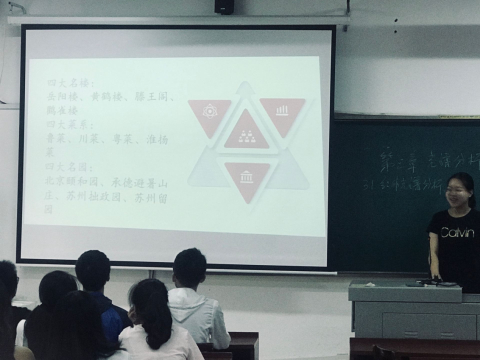 班团支部书记李铭宣通过介绍中国四大名楼、四大菜系以及四大名园开始此次的讲座,着重介绍中国文化的发展简史,同时穿插许多朝代趣闻,带领同学们了解中华千年往事,号召同学们主动了解中国传统文化。