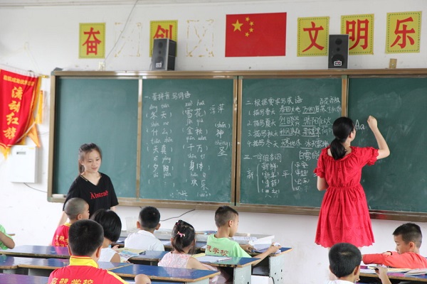 7月14日晚上7时40分,365英国上市集团员工社团联合会赴衡阳市祁东县成龙公司暑期实践团成员尹丽康在教室带领成龙公司的五年级同学们观看电影《疯狂动物城》。副班主任谭祖灵有序地维持观影秩序。