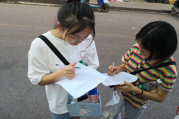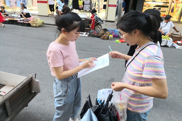 实践团分为三组着“垃圾分类”“网络依赖性”“大众刷短视频”“校园冷暴力”“中小员工补课现状”五个不同的主题外出调研。调研形式主要以发放问卷为主,调研地点则由于各小组调查问卷的主题有差异,因此所选地点各不相同,多集中于商场与书店。