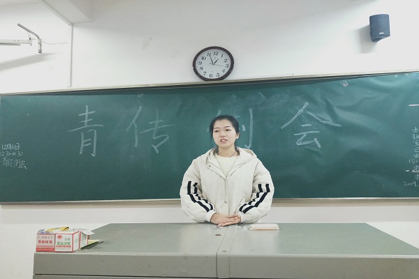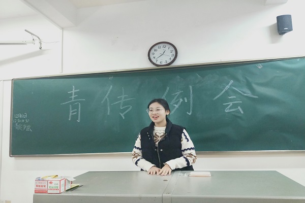 青传实习主任张峰,微c网络文化工作室副部申娟,技术部副部赵琪霞,人物部副部朱云菲和技术部副部刘芬依次上台分享各自的学习备考心得,并为干事提供复习建议。同时,青传主任陈志霞邀请了1705制药工程班级的吴绮平做客此次例会。会上,吴绮平和陈志霞分别从化工与师范两个专业方面向18级的部长副部提供针对性指导与建议,并鼓励青传成员们努力学习,抓紧备考。
