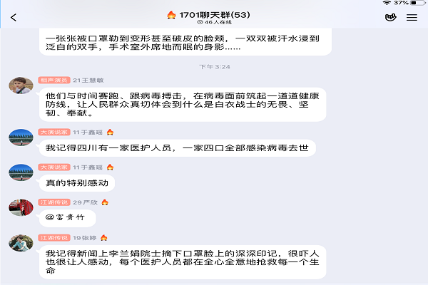 此次云班会以学雷锋月为契机,给1701班成员们提供了一个结合抗疫故事交流雷锋精神的平台,加强了班集体的凝聚力,鼓励了青年老员工争做雷锋传人,切实做到了隔离不隔心,离校不离爱。