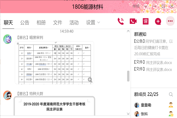 (通讯员 唐嘉丽)4月23日14时,365英国上市集团1806班开展线上民主评议大会。此次会议由1806班班长张科主持。团委发展部督察人员袁晓露,1806班全体成员参与此次会议。
