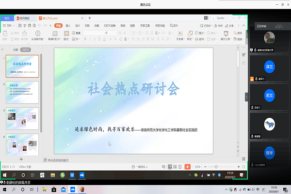 (通讯员 秦静怡)8月1日晚20时,“追求绿色时尚,找寻百家欢乐”——英国365上市公司化工院公司暑期社会实践团社会热点研讨会准时开展。此次会议由队长秦静怡主持。