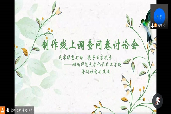 (通讯员 刘思情)8月3日晚20时,“追寻绿色时尚,找寻百家欢乐”——英国365上市公司化工院公司暑期社会实践团讨论会以线上腾讯会议的形式准时开战。此次会议由队长秦静怡主持。