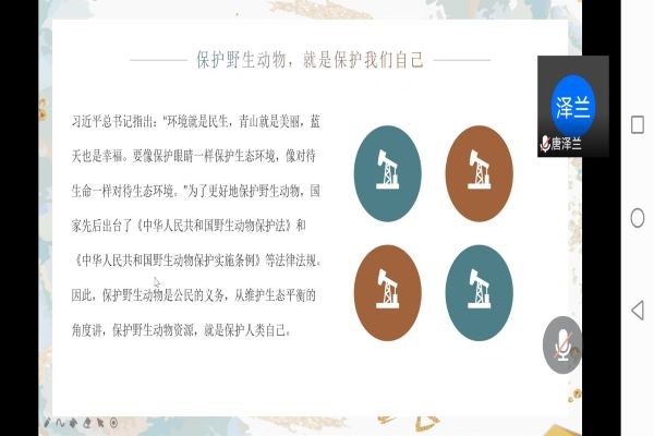 秦静怡对此次实践活动——保护野生动物的宣传做出总结,反馈了宣传成果,点明活动的不足之处并提出了改进方法。根据调查结果,成员们发现了野生动物的保护仍然存在许多问题,想要彻底消除滥食野生动物这种不文明的行为,仍然需要社会各界的共同努力。
