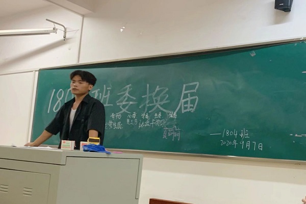 (通讯员 张琰)9月7日17时30分,1804班在219教室举办了班委换届活动,前任班长王鹏辉和团支书张琰主持此次活动。
