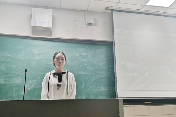 活动伊始,团支书崔雯慧向同学们介绍了《调音师》的背景和拍摄故事,为同学们答疑解惑。