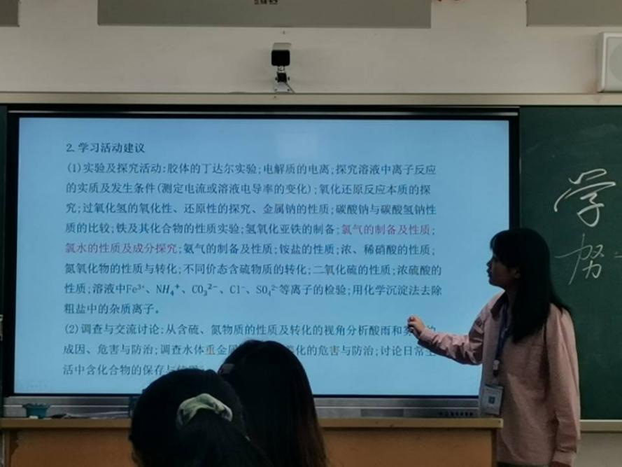 紧接着,朱宇欣同学进行《氯及其化合物》的说课。梁云老师同样就说课的内容进行评价与指导。