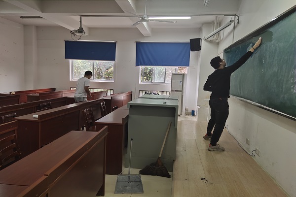 此次活动由化工院权益维护部刘笑、霍莹莹组织,并提前整理好人员安排名单。志愿者在化工院大厅签到后便开始了各组的卫生打扫,负责前坪的志愿者拿着工具捡拾地上和绿化带上的垃圾,整理教室的同学将地面和抽屉的垃圾清理,还有黑板槽等地方擦拭干净,清扫干净以后把工具摆放整齐。活动最后志愿者在化工院门口进行合影留念。