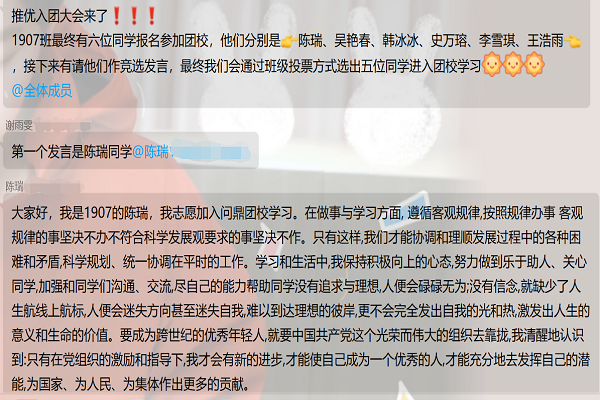 此次会议,展现了2019级1907班同学积极进取的风貌,也让同学们对推优入团有了进一步的认识与了解,同时为团校注入了新鲜血液。