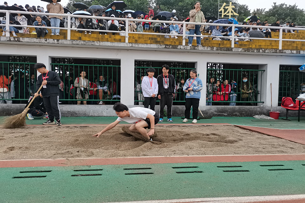 赛场上,运动员们激情飞扬,团结奋进,主持人在主席台上热情洋溢的宣读着来自各院的加油稿件,整个田径场的氛围热烈。在运动会开幕式,化工公司党委副书记罗艳老师亲自来到田径场慰问运动员,关心运动员的身体情况,为大家加油鼓劲。学工办主任屈杜炜老师来到服务点关心文体部工作,向同学们强调了身体第一比赛第二的原则。31日上午18级辅导员谢云霞老师来到风雨长廊的服务点,指导文体部工作,关心运动员与志愿者。