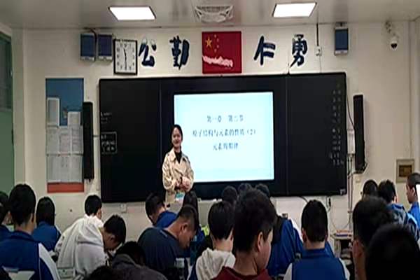 龚欣欣讲授的是选修三的第一章第二节——《元素周期律》,龚欣欣的教案和课件制作准备充分,讲课思路清楚,师生互动自然,给1901班的同学们带来一堂内容丰富的化学课,受到同学们的热情欢迎。