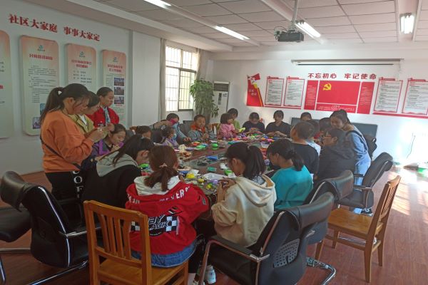 在此次活动中,会员们和小朋友一起学习用粘土制作装饰品,共同运用丰富的想象力做出了各式各样的粘土花、画和其他装饰品。活动会场气氛热烈,小朋友们和会员们其乐融融,同时也有善于动手的会员帮助小朋友完成精美的粘土作品,并在活动结束后将作品赠送给小朋友。最后参加活动的全体成员在社区合影,并主动将会场打扫干净。