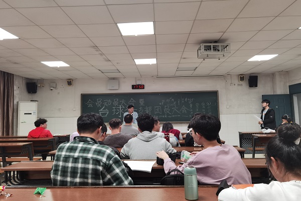 会议开始,唐湘京和宋远鹏对参加会议的23位社员表示了欢迎,并组织所有理事进行了自我介绍。所有社员初步了解后,唐湘京和宋远鹏为所有社员讲述了近期的工作内容和活动安排,让社员更加充分地了解了台球社,积极参与台球社活动及相关台球赛事。此次会议中台球社理事会本着公平公正的原则,组织台球社监察组选举大会。通过自我推荐,民主选举的方式,刘士怡选举为监察长,廖树平、舒涛选举为监察。
