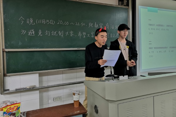 宣传委员汤赵林介绍此次活动目的和规则。活动过程中,刘韵琳通过提问和同学抢答的方式展开答题。为了提高同学们的积极性和保证每位同学的参与程度,此次知识竞赛记录了每位同学的答题数目。活动最后,分别评出陈澳,王培峰,谭嘉妮,王升,贺怡然,殷非凡六位同学获得一等奖一名,二等奖两名,三等奖三名。