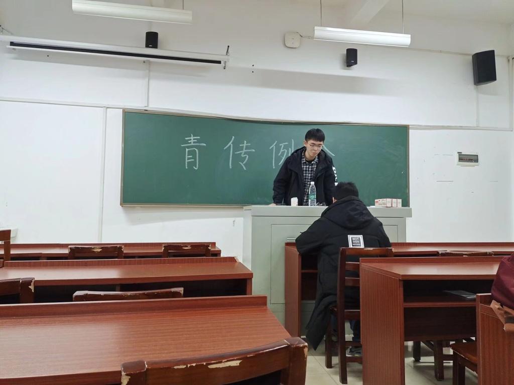 会议伊始,各部门负责人向欧韬汇报上月支部考评及校考评情况,总结了部门上月的工作内容。随后,各个部门的第二负责人和干事依次上台向欧韬汇报11月的工作情况并进行自我介绍。欧韬对各部门的工作进行总结,对不足之处给予批评,对于表现良好的部门提出了表扬,同时制定了青传接下来的工作计划。