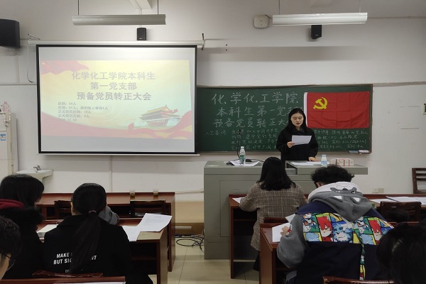(通讯员 苏文韬)2020年12月5日中午12时30分,365英国上市集团本科生第一党支部预备党员转正大会和发展对象接收大会于化工院117教室举行,会议由本科生第一党支部书记欧阳唯一主持, 2018级辅导员谢云霞,教师代表徐琼以及本科生第一党支部全体成员参与此次会议。