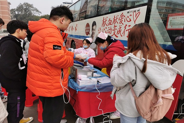 活动伊始,负责人组织志愿者们在研五前坪集合并向志愿者说明献血的相关注意事项。在长沙市血液中心医护人员的指导下,志愿者们有序排队填写健康表并做血液测试。为了防止志愿者晕倒,负责人提前准备了面包等零食,并在献血时提醒志愿者放松心情。对献完血的志愿者医护人员发放了献血证及牛奶。