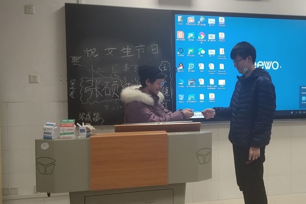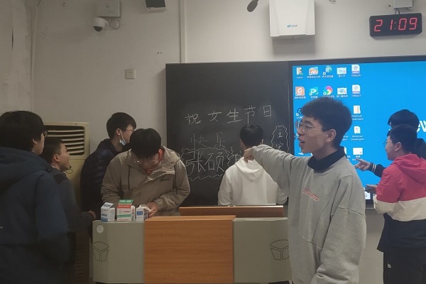3月7日是一个关爱女生的节日,是高校校园趣味文化的代表之一。严丹俐安排男生写好节日贺卡,前来参加活动的女生们都可以得到写满祝福的贺卡,女生们吃到了男生们精心准备的零食,男生在黑板的活动标题旁边写下了各自的名字,并将贺卡送到女生的手中,同学们在欢声笑语的融洽氛围中结束了此次活动。