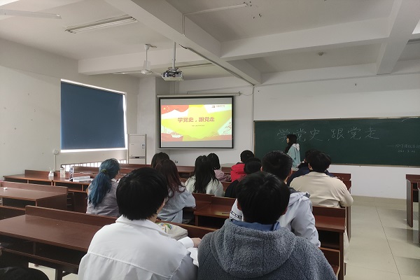主持人王文馨分别通过党史发展脉络及学习意义、新民主主义革命时期、社会主义革命和建设时期、改革开放和社会主义现代化建设新时代四个方面介绍了中国共产党党史与中国共产党的伟大贡献,同学们坚定了为共产主义奋斗终身的政治信念,并从中学到了言行一致的革命精神,奋不顾身的无产阶级斗志,钉子精神。