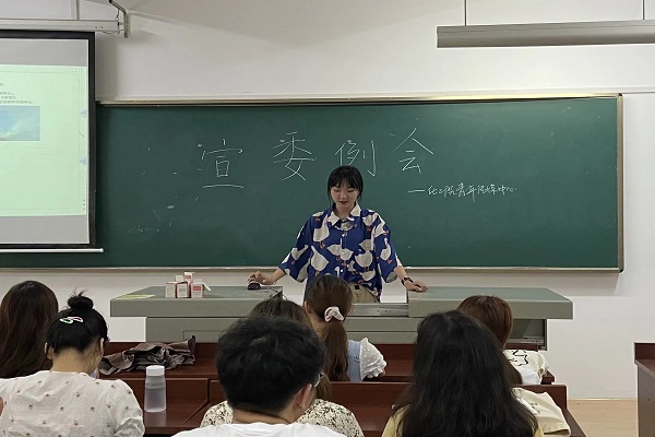 在会议中,部门负责人向宣委解释了新制定的考评细则,对宣委考评中常出现的问题进行说明,并对工作成果较为优秀的班级表示肯定。随后,公共事务部邀请2001班的宣委吴哲分享自己的工作心得。吴哲认为,只要让班级中的同学团结协作,宣委的工作就能高效高质地完成。