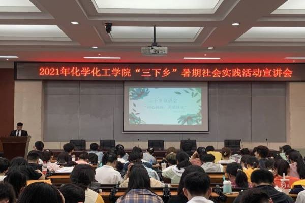 (通讯员 叶家羽)5月25日12时30分,化学化工院2021年暑期三下乡社会实践宣讲会于化工院报告厅举行。院团委书记欧阳唯一出席此次会议。此次宣讲会由化工院团委社会实践部组织策划,社会实践部成员叶家羽及宣传部成员肖扬主持,20级与19级同学参加。