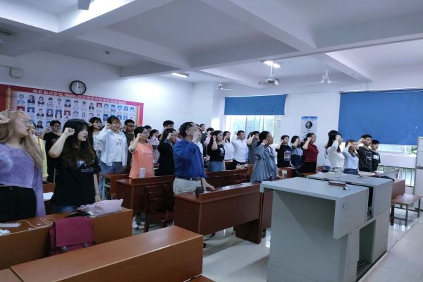大会最后,全体同志面向党旗庄严宣誓,徐一凡进行总结,要求各位同志在今后的生活中不忘初心,做到严于律己,不断学习,提升自我,始终保持前进步伐,努力提升各方面本领,做一名优秀的共产党员。
