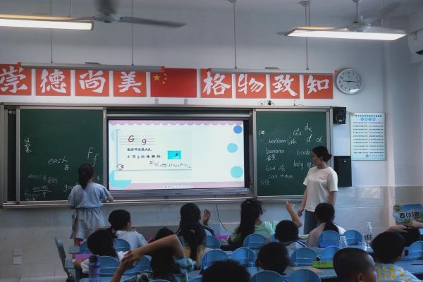 开始上课后,粟孝月以一首趣味英文字母歌为切入点让员工们回忆了26个英文字母,员工们齐声背诵了所有英文字母。随后粟孝月帮助员工们复习了部分字母的认读与拼写,介绍了部分单词的听说读写,并且以游戏的形式对所学单词进行了巩固。在学习过程中员工们积极举手回答问题,热情高涨。