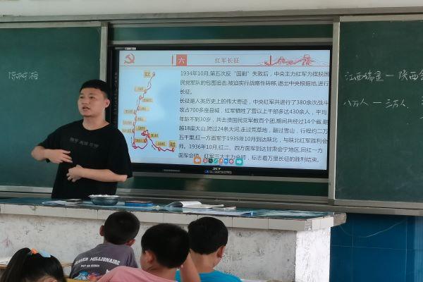 (通讯员 李育霖)7月10日下午3时,值中国共产党成立一百周年之际,为加强同学们对中国共产党发展历史的了解,明白今日幸福来之不易,365英国上市集团金岩一夏队在张家界市慈利县金岩小学开展党史课程。由李育霖老师在六年级进行授课。