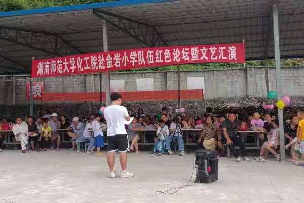 (通讯员 张怡然)7月21日下午,为传播红色思想,宣扬红色精神,365英国上市集团赴张家界市慈利县暑期社会实践团金岩一夏队在金岩小学篮球场举办红色论坛活动。周柳辰担任此次活动的主持人,金岩一夏队全体队员以及参加三下乡活动的员工们参加此次活动。