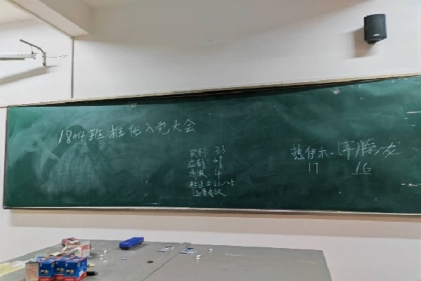 余益根向同学们介绍党的红色章程、回顾党的光荣历史,并汇报候选人基本情况。候选人依次进行自我陈述,讲述自己的经历以及对党的了解和觉悟。同学们进入讨论时间对候选人提问,然后进行无记名投票,最后现场唱票、公布票数。此次推优入党的同学有:谭滕龙、热伊木。