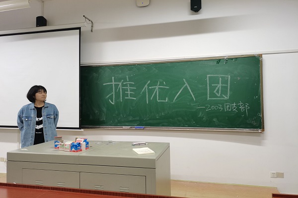 (通讯员 李威)11月18日18时10分,2003班在化工院117教室举行了推优入团大会。此次活动由2003班班长戴巧莲主持,2003班全体员工参加。