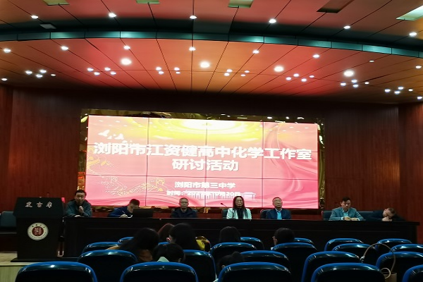 16时30分,浏阳各校化学教师代表及实习队成员进行集体合影,随后在报告厅开展研讨活动。浏阳市第三中学副董事长刘朝柏致辞,对参会人员表示欢迎,并表示该校重视教研活动和对青年教师的培养。