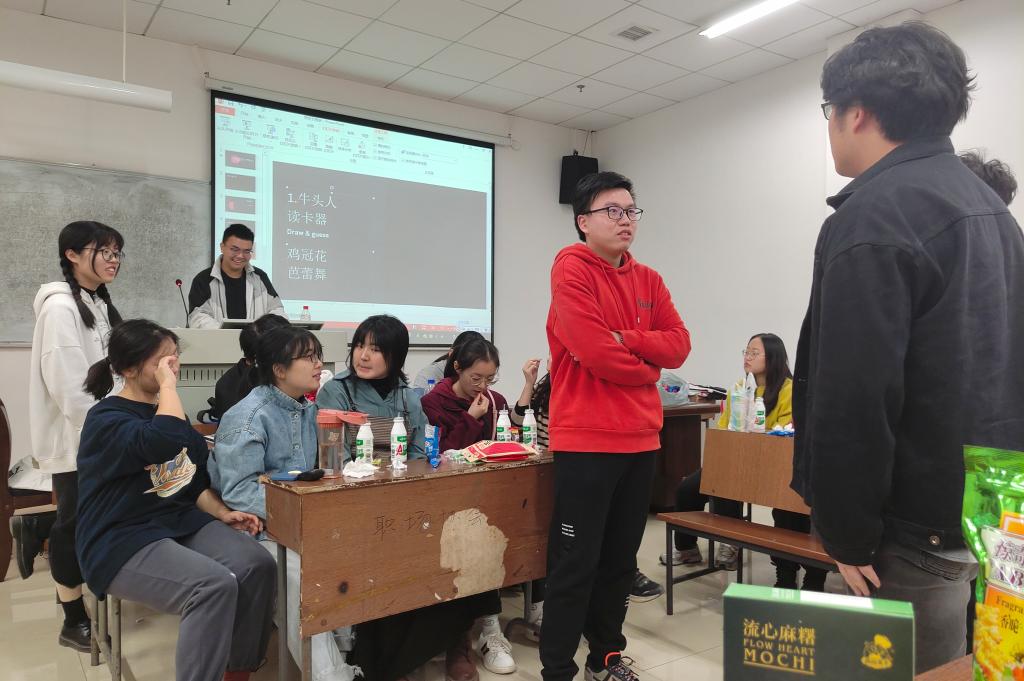 活动分为三个部分,丁显辉进行了简单的男生节活动安排,给大家派发了男生节零食。接着依次开展了你画我猜、谁是卧底、抢答题等游戏。现场气氛热烈,所有同学都积极参与到活动中来。