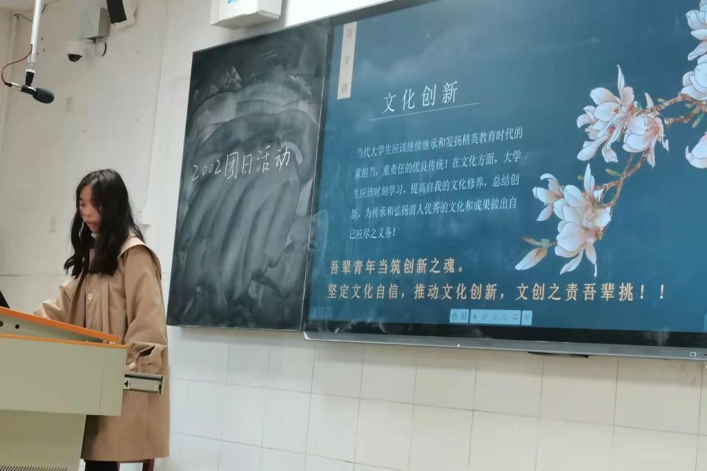 (通讯员 吴碧雯)11月15日上午10时10分,2002班在至善楼205教室举行了“九万里风鹏正举,文创之责吾辈挑”主题团日活动。此次团日活动由团支书陈琦组织开展,2002班全体成员参与。