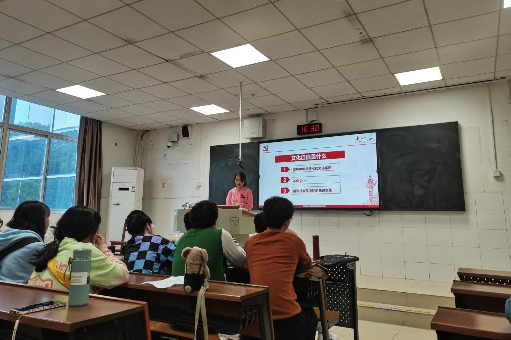 此次团日活动主要分为知识竞答、小组讨论和总结讲话。围绕百年建党历史,宣传委员宋恩熙给同学们准备了相关题目,同学们热情高涨,积极作答。为了让同学们深刻理解“总书记“七一”重要讲话精神”,班级内分为四个小组针对“如何提高文化自信”展开了讨论。最后,团支书唐徐婧阐述了文化自信的内涵及意义作为总结发言。