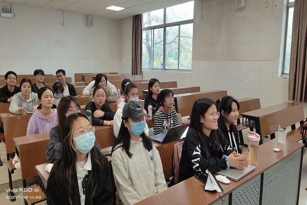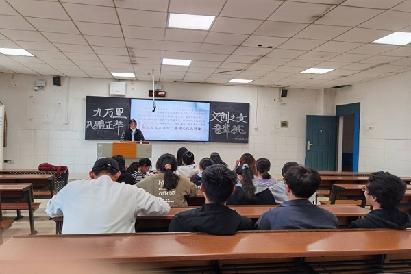 活动开始,郑思佳向大家介绍了近年来央视播出的经典咏流传等文化栏目,并向同学们讲述这些栏目的宗旨,让同学们明白了文化自信对于国家的重要性。她提出“由人化文,以文化人”的观点,呼吁树立文化自信,赓续文化辉煌。她还强调青年在文化创新发展中肩负重大使命,鼓励同学们积极主动地参与文化创新活动。