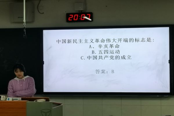 活动开始前,由宣传委员罗雅文分组,根据男女比例合理分配,然后进行抢答环节。题目分为党的路线,党的领袖,党的政策,党的发展四大板块,联系中国共产党自诞生以来的重大事件。此次活动不仅有单选题和多选题,还有问答题,大家都积极参加,兴致高昂。