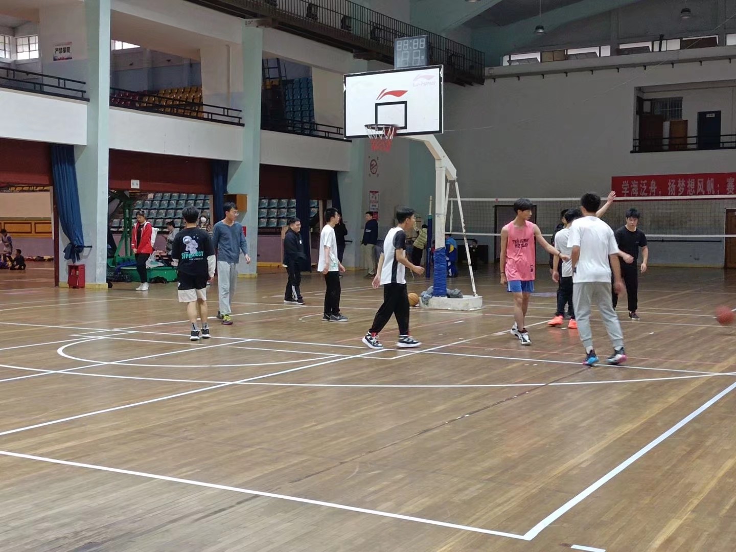 (通讯员 邹东阳)11月21日14时,为丰富老员工生活,促进同学情谊,2107班和2104班在体育馆举办篮球友谊赛,2107班和2104班部分同学参与了此次活动。