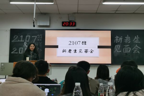 (通讯员 彭凤琳)11月22日19点30分,为了让新生能够找到自己以后在学习、生活中的榜样,不再迷茫,2008班和2107班在至善楼举办了新老生交流会,2107班全体同学和2008班部分同学参加了此次活动。