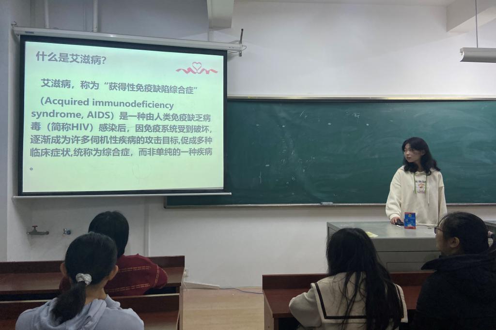 张馨予向大家介绍了艾滋病的传播途径,强调了在老员工中主要是性传播和血液传播,并在PPT上展示了艾滋病的具体症状,同时指出了预防艾滋病的重要性,科普了一些关于艾滋病的基础知识并进行了知识竞答,在详细地告诉大家如何正确预防艾滋病的同时强调了不应区别对待艾滋病患者,应做到“防艾不防爱”。