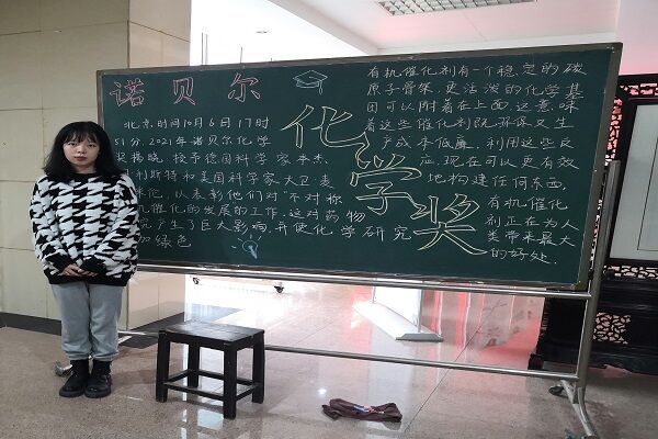 此次活动以黑板报为载体,用绘画和文字的形式对黑板报进行填充。此次活动共划分为三个板块,分别是:志愿精神的宣传、化学小知识的讲解、以及诺贝尔化学奖得主的故事分享。活动开始前,化工院团委青工部为志愿者们准备了活动所需的各种材料,志愿者通过上网查找资料完善黑板报内容。在此次活动过程中,志愿者们运用他们过人的绘画能力和动手能力完成了一个个优秀的宣传作品。