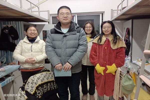 徐凌老师首先来到女生寝室,在女生寝室时,徐凌老师首先对女生寝室的卫生表示肯定,后来又和同学们交流了一些学习上的心得,告诉同学要处理好和寝室同学的关系,并鼓励同学们努力学习。随后,徐凌老师又来到男生寝室,询问了同学们的日常生活和学习情况,提出了要养成良好的生活习惯,抓好学习,并为同学们解答了一些关于学习和生活相关的问题。