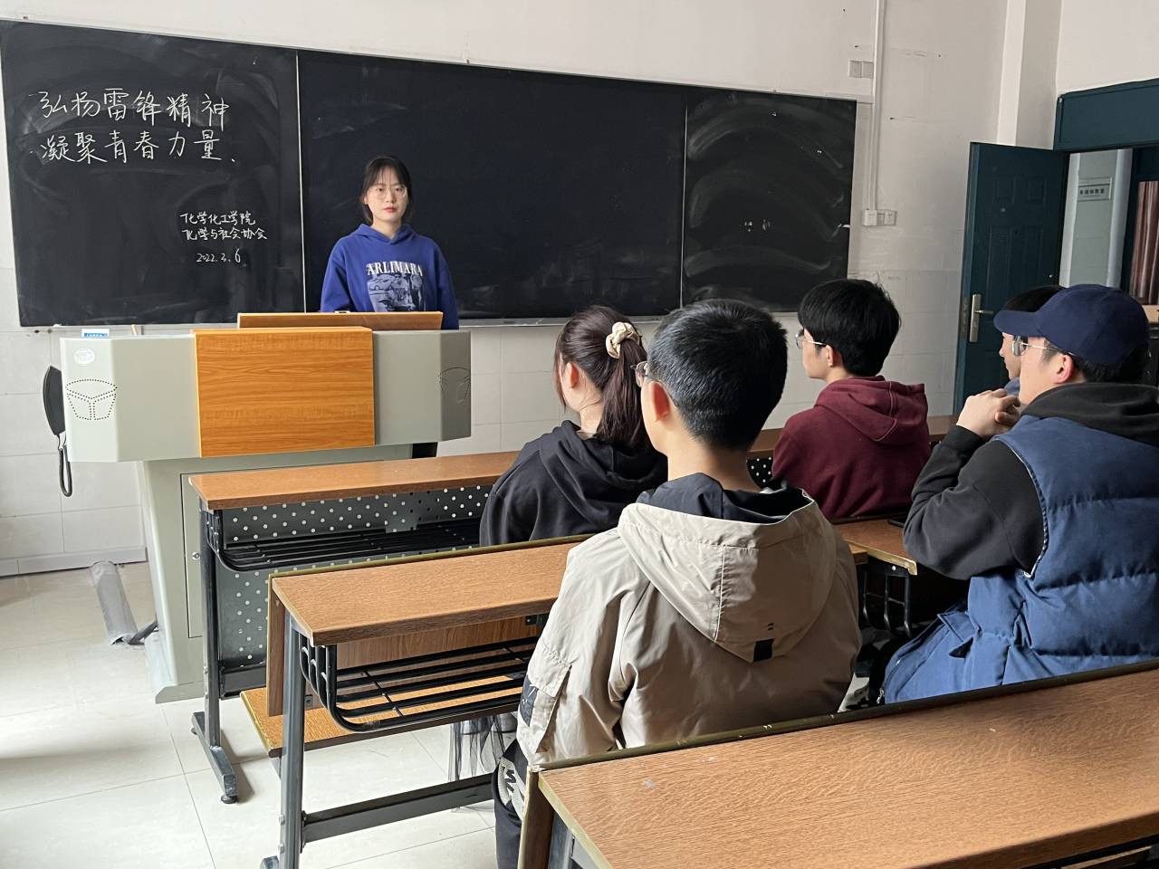 此次活动由化学与社会协会副理事长李林主持。参与活动的理事会成员提前到达304教室,并板书此次活动主题。在活动期间,李林介绍了雷锋叔叔的相关事迹,并讲述了学习雷锋精神的重要意义,还邀请各位参加活动的社团理事们轮流发表关于此次活动的感悟。